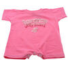 Your baby girl will look super sweet in this cute and comfortable raspberry pink romper. It pulls over like a T-shirt and buttons up at the bottom, and says “You Know What I Mean Jelly Bean?” in sparkly letters on the front. Made of soft 100% cotton.